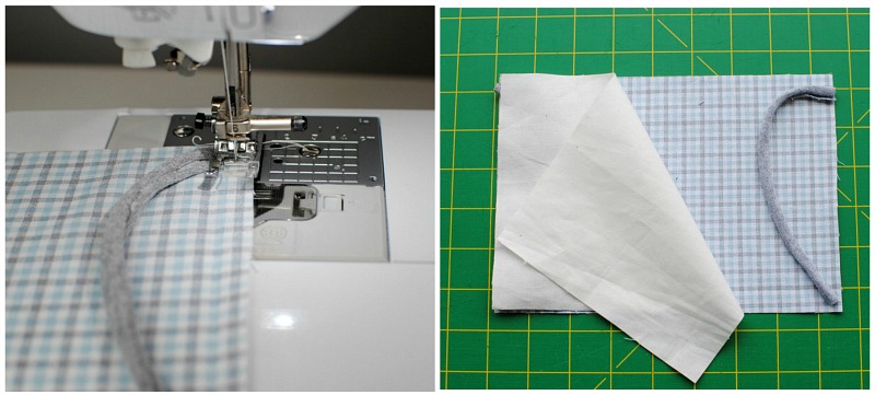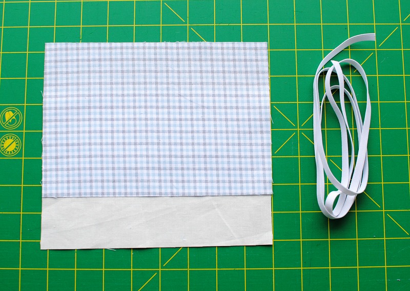 Cut 4 x 20" strips and sew them in the corners so they can tie/knot them around the back of the head. You can use painters tape to secure the straps in the center when sewing right sides together.